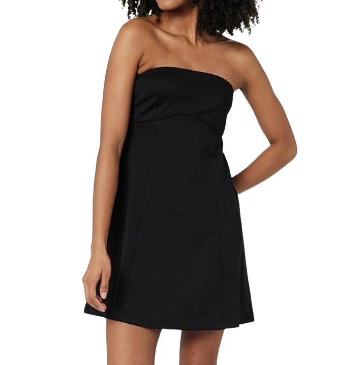 This breezy strapless mini dress is a versatile piece that can easily be dressed up with a blazer and espadrille wedge sandals.
