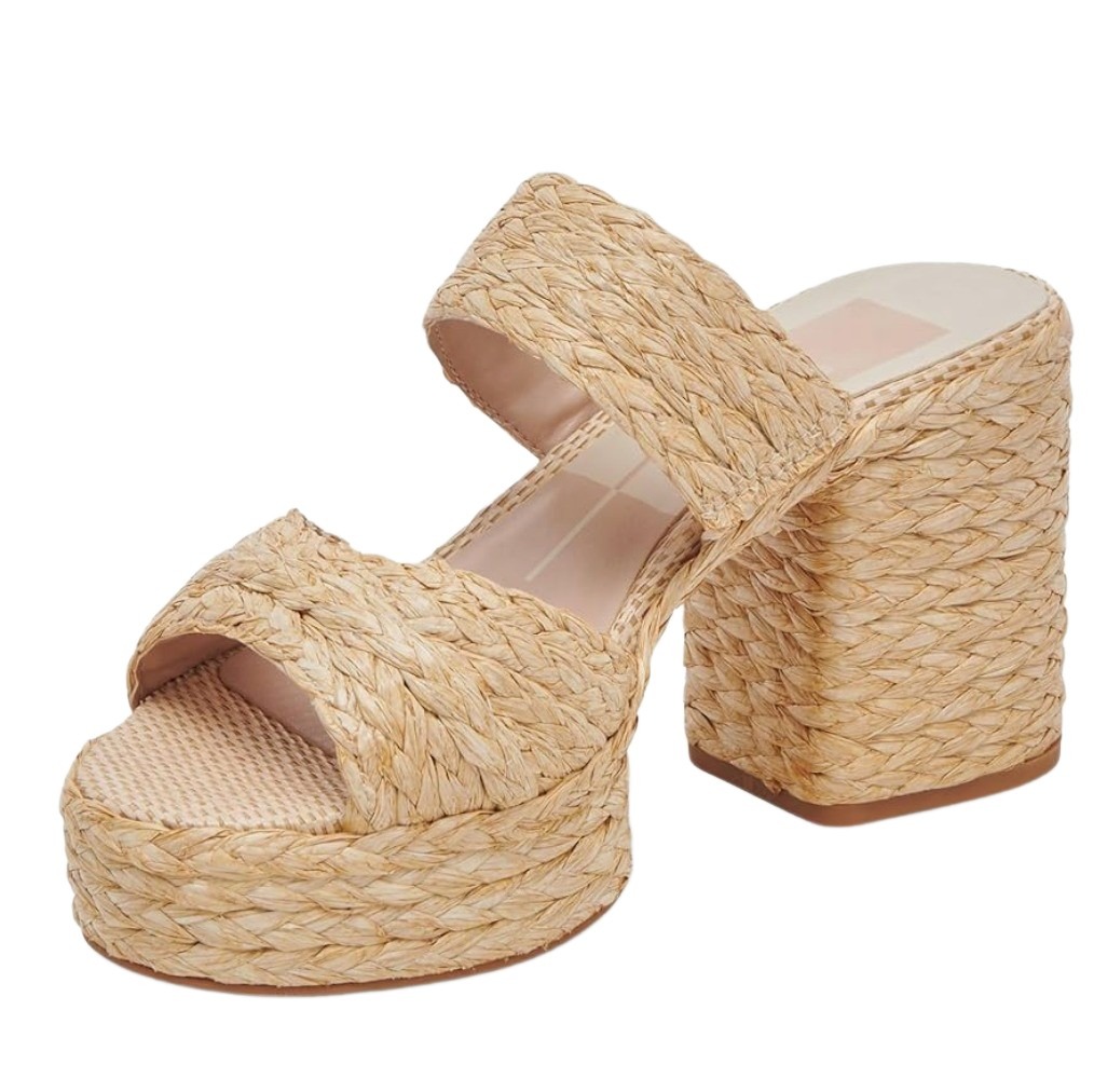 These chunky plaform raffia sandals are perfect to pair with a lightweight, airy dress, or shorts and a top for a carefree, bohemian spring look.