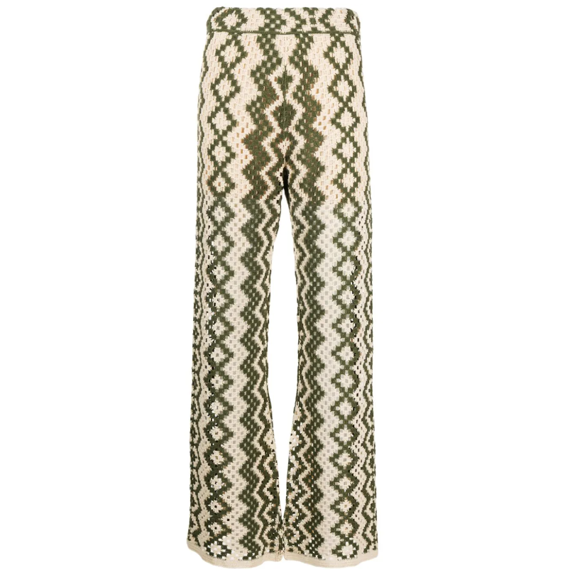 Embrace boho-chic vibes with these crochet knit pants, featuring intricate geometric detailing that would pair perfectly with a knit crochet vest.