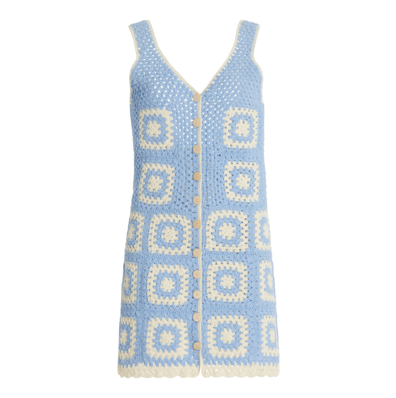This crochet mini dress effortlessly blends comfort and elegance, creating a breezy and stylish look for your warm weather adventures.