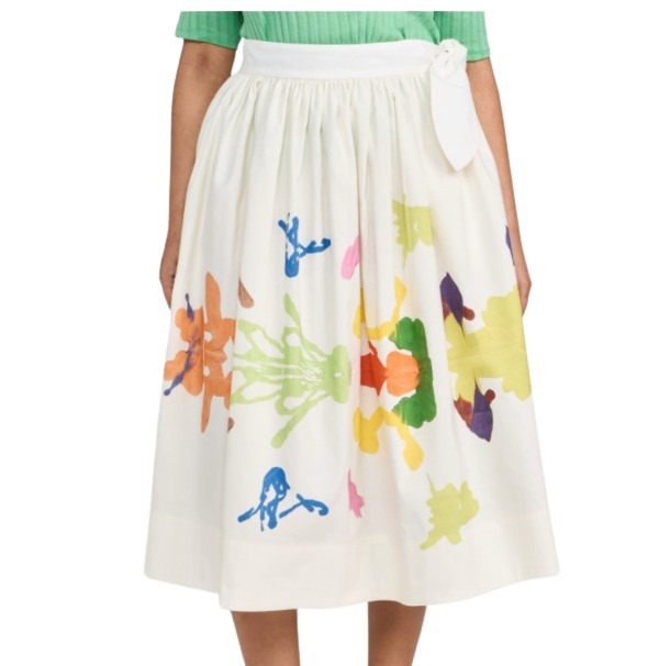 With a playful tie detail, breezy silhouette, and abstract floral print, this midi skirt (and the matching crop top) is a perfect choice for transitioning into the lighter and brighter days of pre-spring fashion.