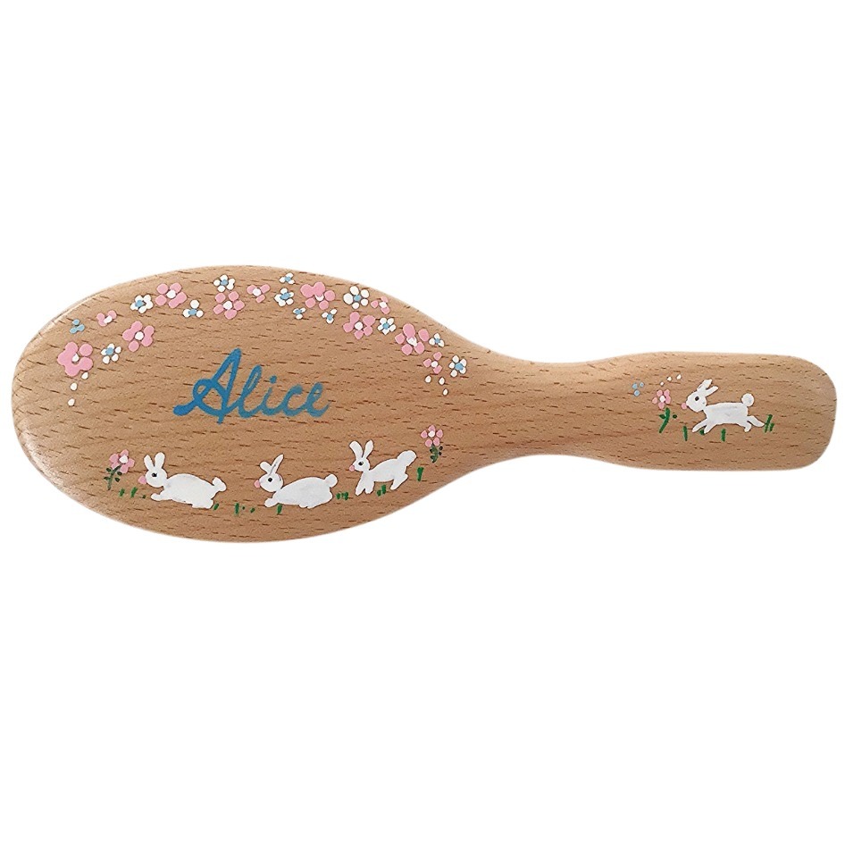 Perfect for the little ones, this personalized hair brush features a whimsical floral garland and bunny design for a delightful Easter surprise in their basket this year.