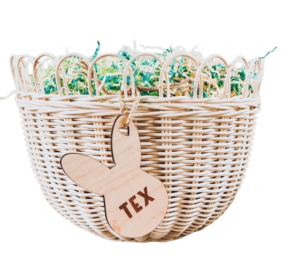 Make Easter extra special with a personalized touch using these wooden basket tags that add a delightful and customized flair to your Easter baskets, making each one a unique treasure.