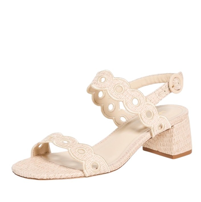 Pair these intricate broderie heeled sandals with a flowy sundress or linen pants and a blouse for effortless elegance during warm-weather outings.