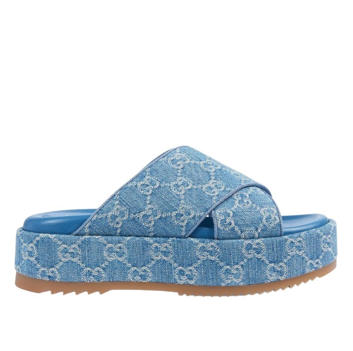 The iconic GG logo, on trend denim fabric, and platform design make these sandals a fashion-forward choice for adding a touch of luxury to your seasonal looks.
