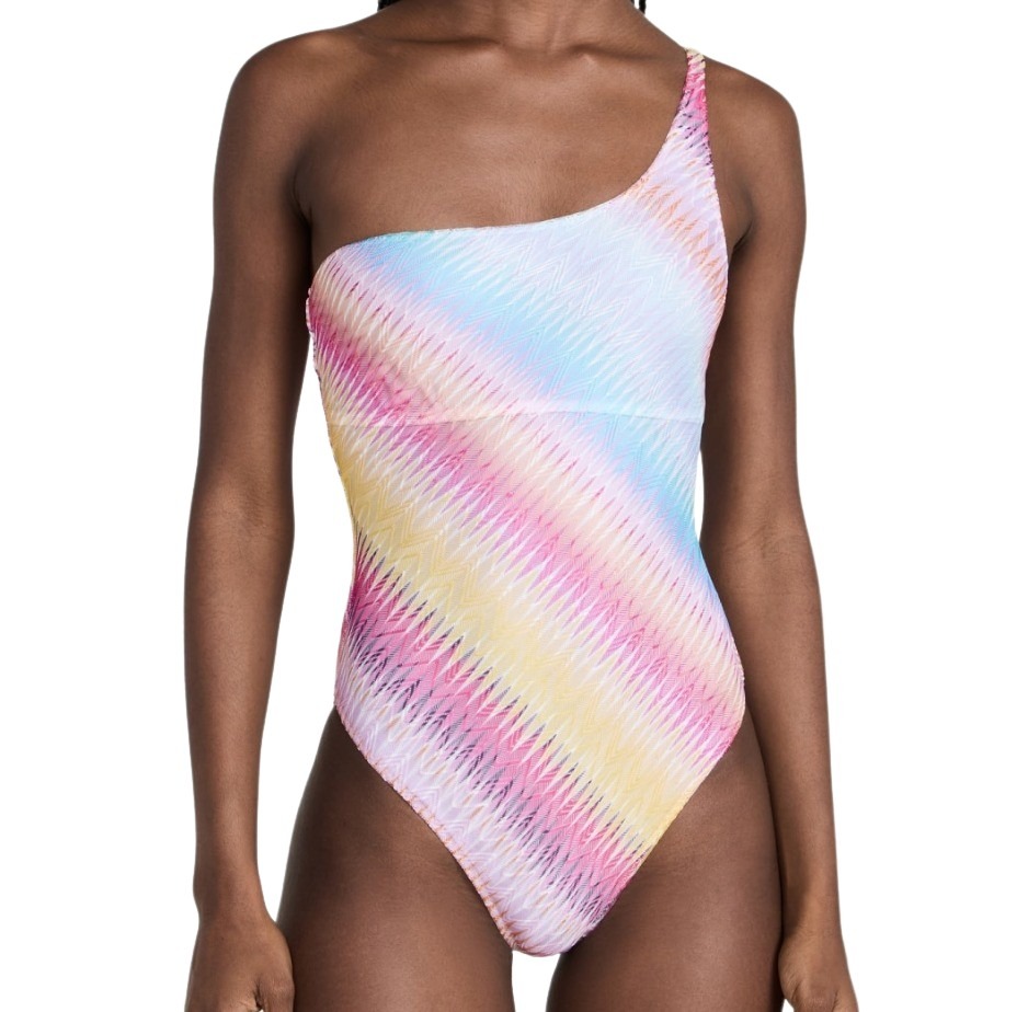 Dive into spring with this one shoulder one piece swimsuit. The iconic zig zag knit and chic design make it a standout choice for poolside elegance, ensuring you make a splash in style.