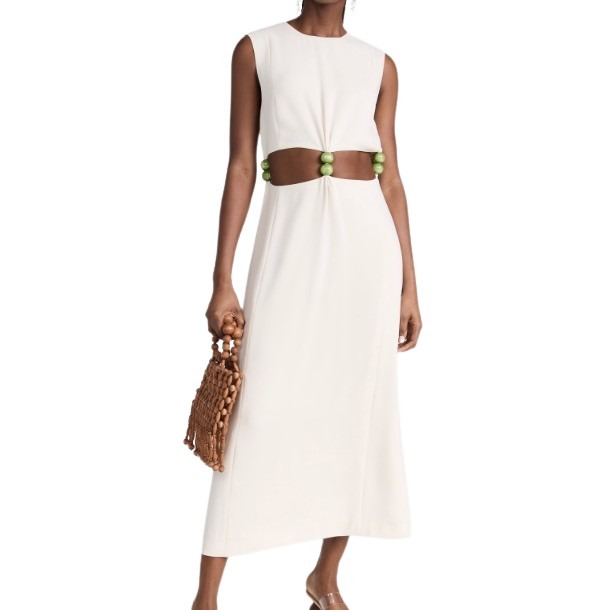 With beading and cut-out details, this breezy midi dress is a captivating choice for any springtime occasion, whether dressed up with heels or down with sandals.