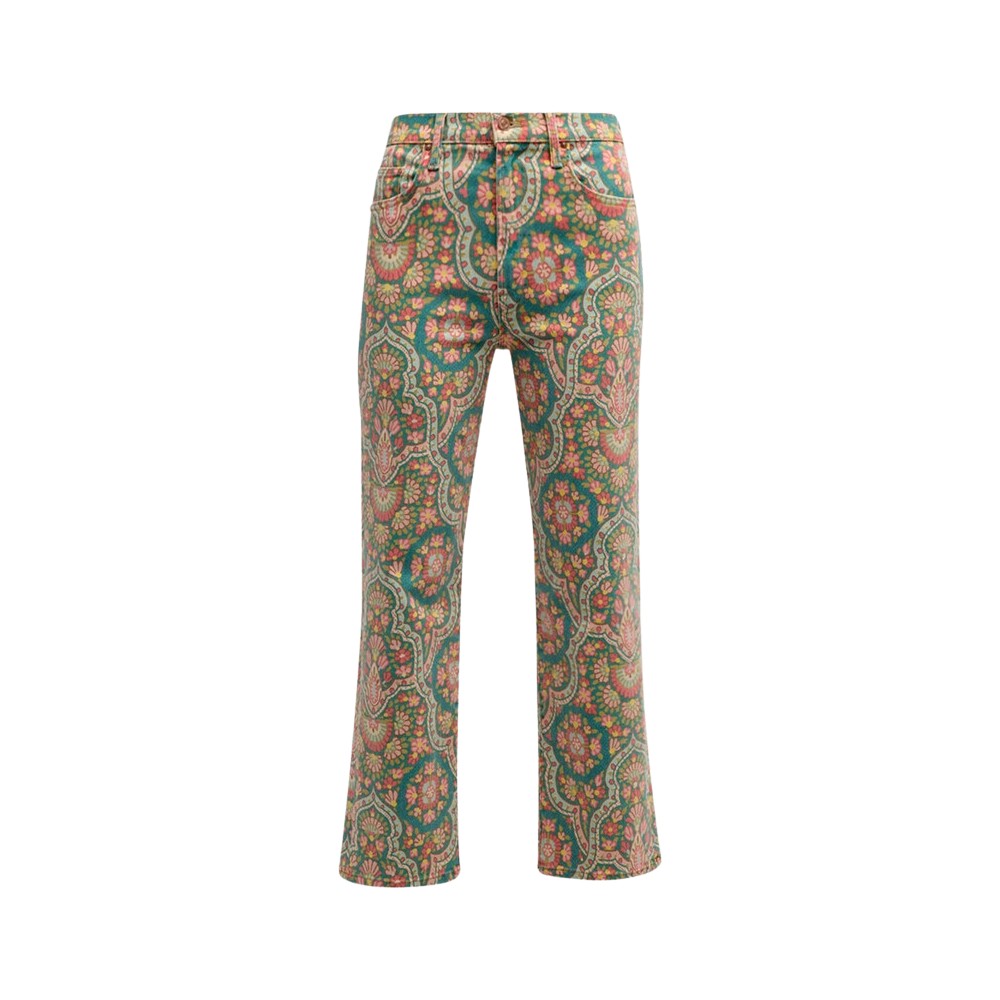 With a playful printed motif and ankle-length design, these jeans bring a fresh flair to classic wardrobe staples like linen tops and denim jackets.