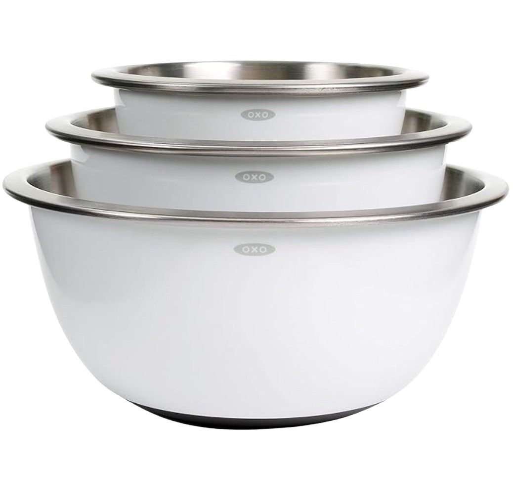 Sturdy yet lightweight, these stainless steel mixing bowls with non-slip bottoms are a kitchen must-have for everything from baking projects with the girls, to easy meal prep.