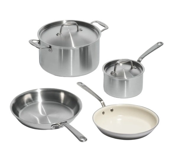 Durable, sleek, and crafted for serious performance, this 6-piece stainless steel cookware set covers all the basics for both everyday meals and special occasions.