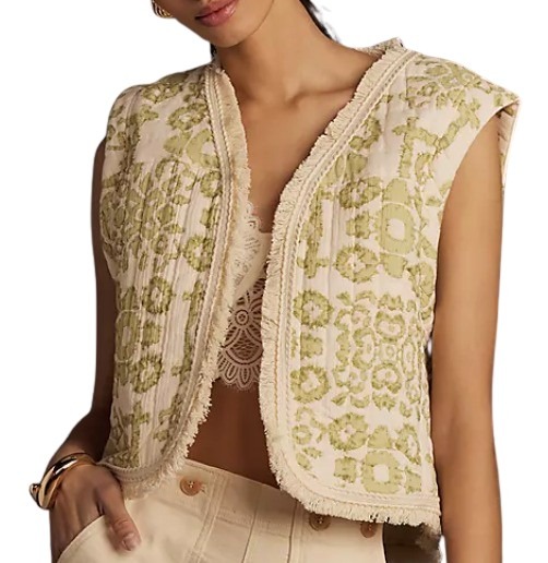Vests have reemerged as a key layering piece for both function and style. Opting for lightweight materials and versatile designs, these vests are perfect for transitioning well into spring and beyond. Whether it’s a crochet, quilted, or embroidered statement piece vest, or a linen, cotton-blend, or structured style with a more defined silhouette, the appeal lies in the ability to complement a wide range of looks. Both neutral tones and bold, colorful patterns dominate my picks, offering flexibility to mix and match with existing wardrobe pieces, or to create a whole new look!