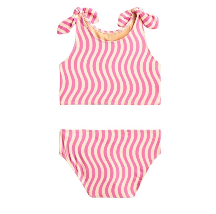 Prepare for poolside fun with this wavy print bikini set, perfect when paired with sandals and a sun hat.
