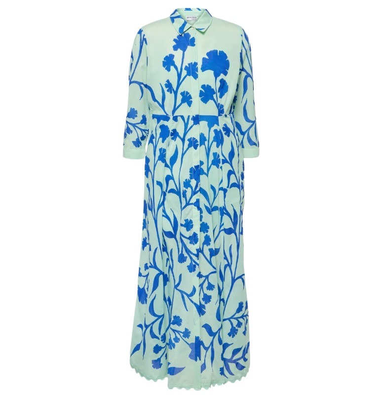 Embrace the freshness of spring with this vibrant maxi dress, featuring a playful print and airy silhouette.